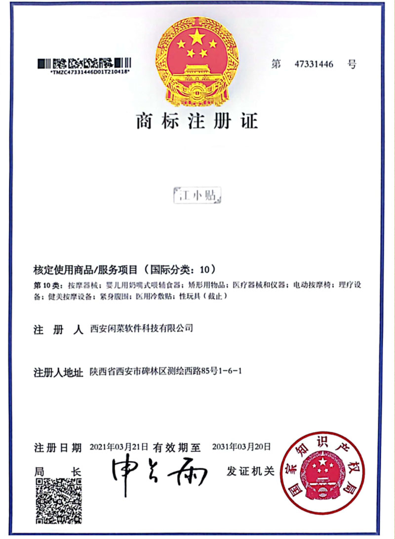 Jiang XiaoTie's Class 10 Trademark Certificate
