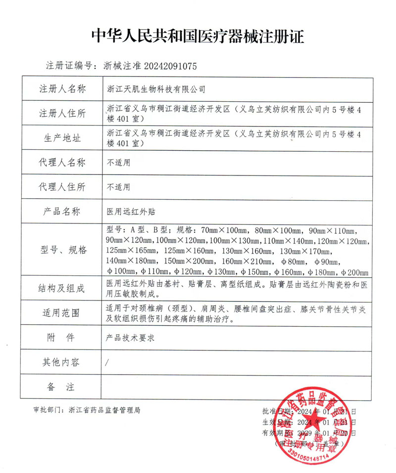 Medical far-infrared sticker registration certificate